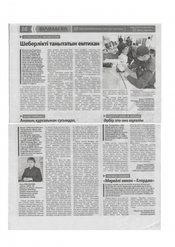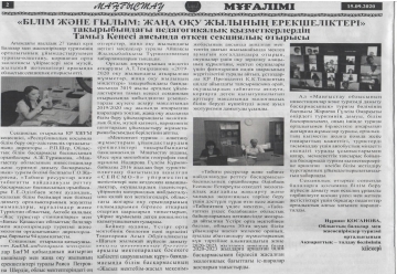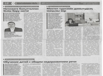 «Маңғыстау мұғалімі» газетіне жарияланған орталық әдіскерлерінің мақалалары ...