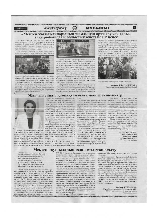 «Маңғыстау мұғалімі» газетіне жарияланған мақалалар