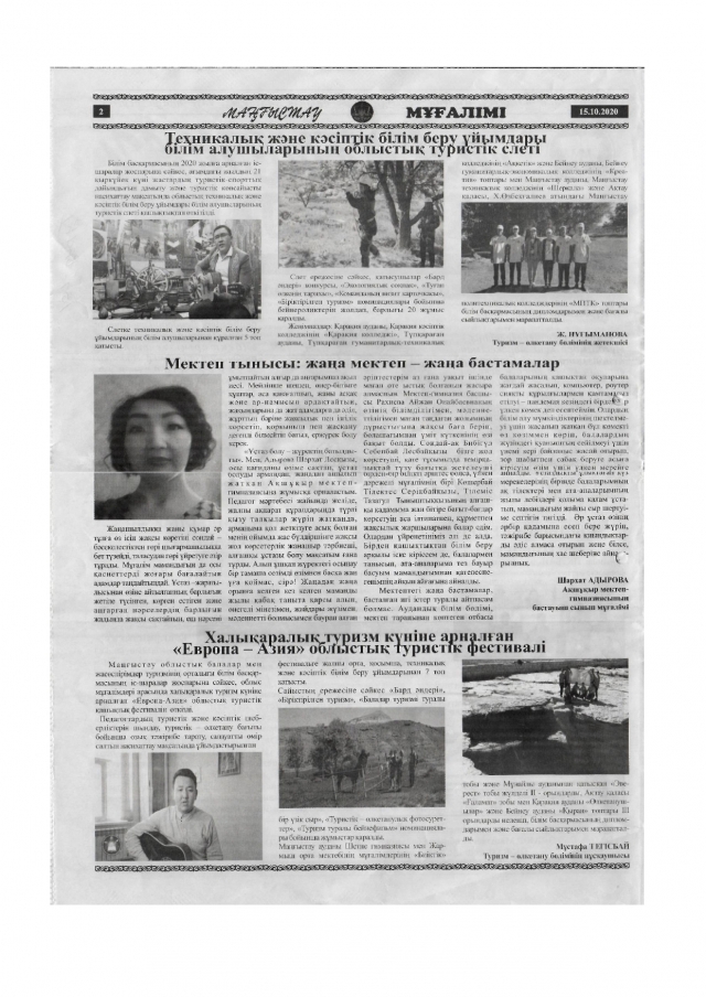 2. Халықаралық туризм күніне арналған «Еуропа-Азия» облыстық туристік фестивалі. Мақала авторы - туризм-өлкетану бөлімінің нұсқаушысы Тегісбай Мұстафа