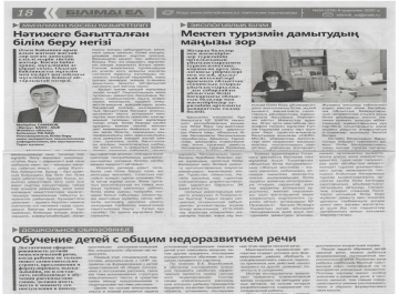 Статья опубликованная в газете «Маңғыстау мұғалімі» областного слета ...