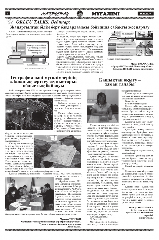 1. Автор статьи областного интернет-конкурса «Әке көрген - оқ жонар», посвященный ...
