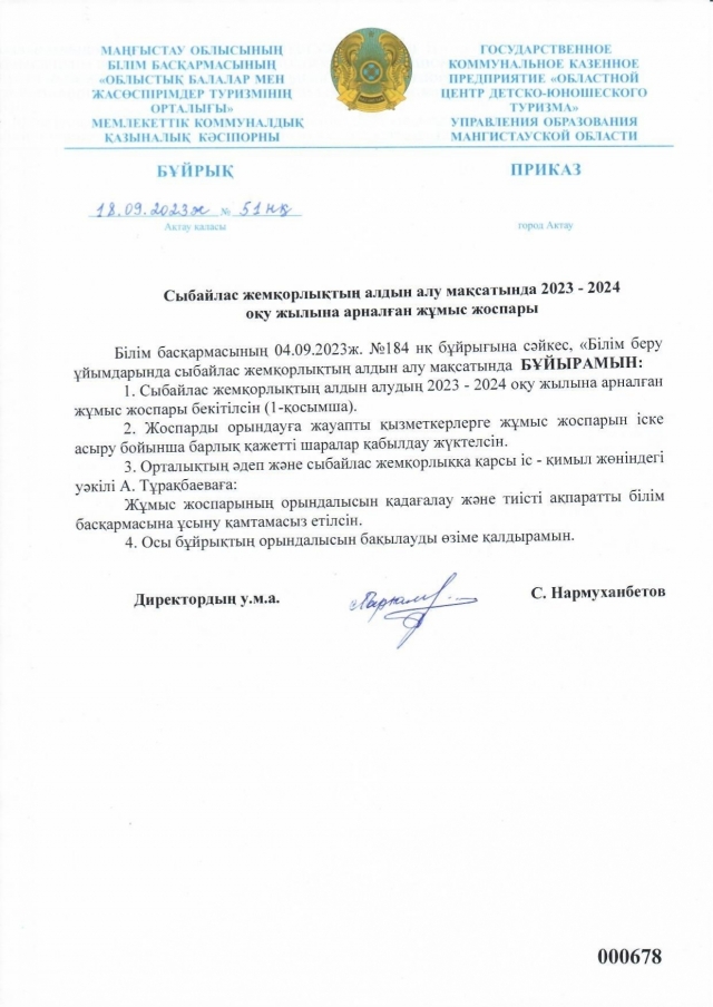 План работы на 2023 - 2024 учебный год в целях профилактики коррупции